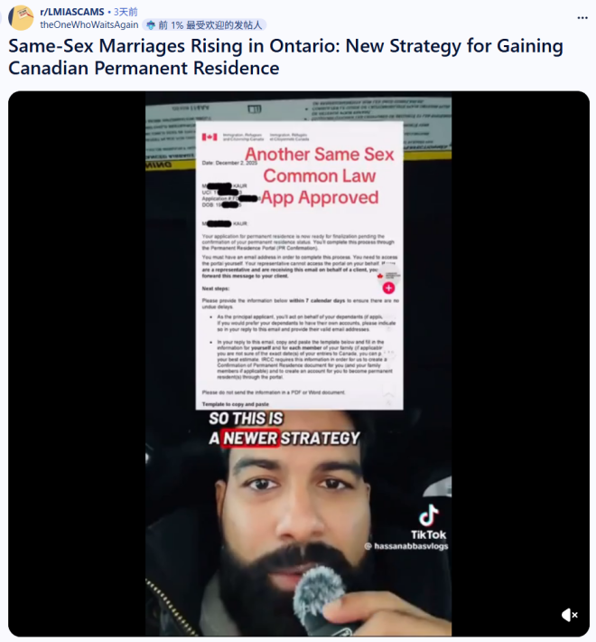 视频博主在内容中提到,随着加拿大政策持续收紧,一种所谓的“新策略”正在安省悄然兴起——通过申请同性同居(Common-Law)关系来获取加拿大永久居民(PR)身份。