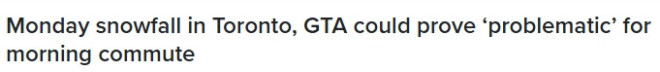 环境部已对及大多伦多地区(GTA)发布降雪警告。当假期结束、民众陆续返岗,这场降雪可能会对周一早高峰通勤造成“较大影响”。