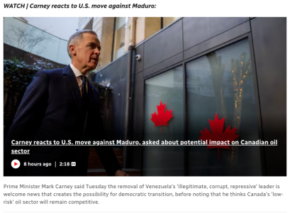 卡尼駁斥了這種擔憂,他表示,雖然他歡迎“委內瑞拉更加繁榮的前景”,但加拿大已經採取措施增加對亞洲的石油出口,並使其出口來源多元化,不再局限於美國。