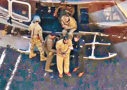 馬杜羅(前中)被押解到曼哈頓的聯邦法院。