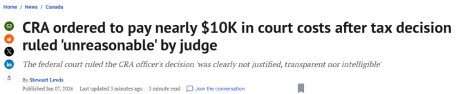 这项诉讼费用裁定由法官Danielle Ferron于去年12月作出,案件源于对该名官员决定的司法复核。与此同时,相关文件已被发回CRA,要求其重新审查退税相关问题。