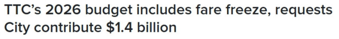 文章来源于互联网:多伦多TTC预算30亿!2026年不涨价,还要取消月票