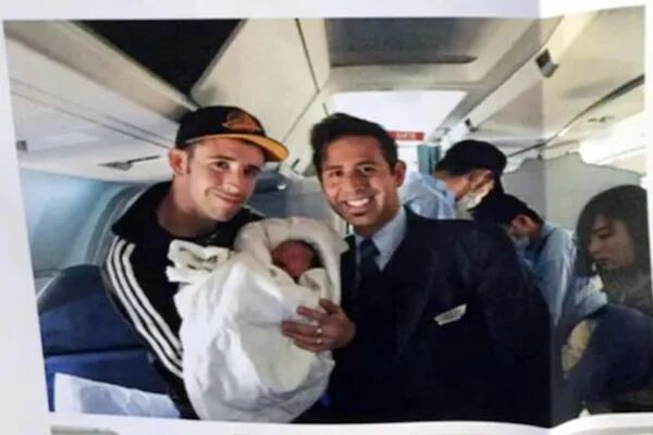 幸亏机上有三名医生……很顺利,一个健康的女婴在云端降生。
