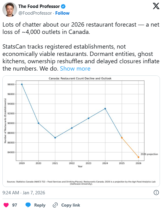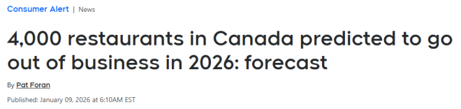 达尔豪斯大学目前预测,到2026年,还将有大约4,000家餐厅撑不下去。