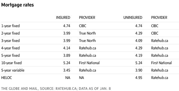 截至1月8日的最佳房贷利率。图源:Globe and Mail