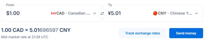 与此同时,加元兑人民币汇率跌至1加元兑5.01人民币元。