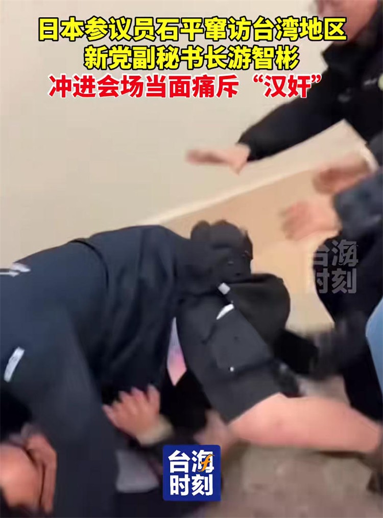 「台海時刻」報道,日本參議員石平竄訪台灣地區,新黨副秘書長游智彬衝進會場當面痛斥「漢奸」。