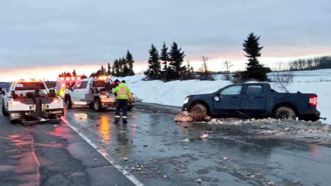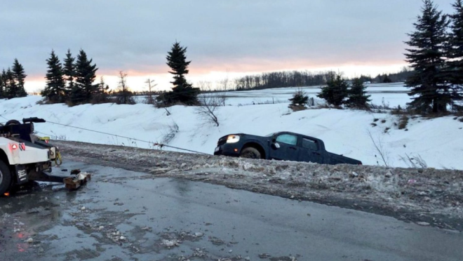 周五,一辆皮卡在Innisfil的400号高速公路发生碰撞后被从路边沟渠中拖出。目击者告诉警方,该车辆在撞上一辆救护车前被看到行驶异常。