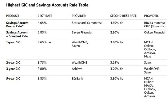 - EQ Bank 的五年期 GIC 利率最高,达 3.85%