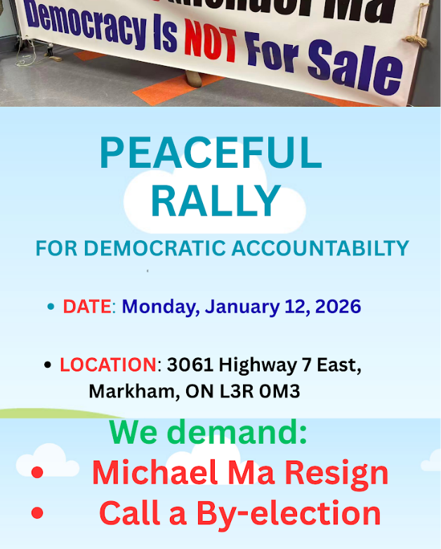 2026年1月3日(星期六),万锦–于人村社区成员举行了一场事先公开宣布的市政厅会议,期望就叛党事件与本区国会议员 Michael Ma 进行面对面交流。