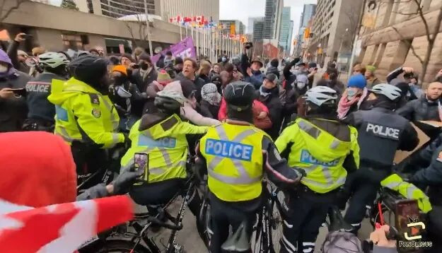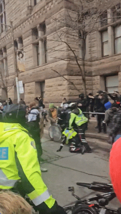 本周六(1月10日),多伦多市政厅前的Nathan Phillips Square广场爆发了一场近年来罕见的激烈冲突。鸡蛋、用过的厕纸、装有疑似尿液粪便的塑料袋、烟雾弹齐飞……迫使警方紧急动用自行车筑起防线,现场多人被按倒在地、戴上手铐带走。