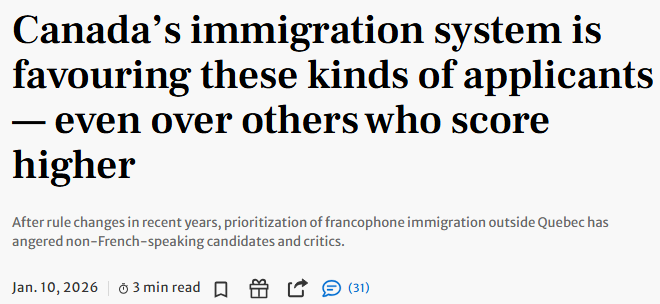 这意味着,在一套号称“按分数择优”的移民系统里,近一半的邀请,优先给了会法语的人。