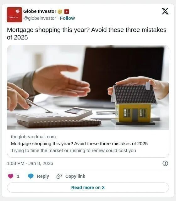 (加西网综合)随着超过 一百万名加拿大房主将在 2026 年面临按揭续约,而部分观望买家也可能因房价回落而决定入市,如何在动荡的利率环境中争取最有利的按揭条件,成为许多家庭的关键课题。