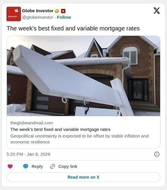 截止昨天1月9号加拿大市场的最佳按揭利率