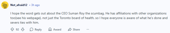 - 超过10万加元的报销款项支付给了当时的董事会主席、现任CEO苏曼·罗伊(Suman Roy),而这些费用是他自己批准的;