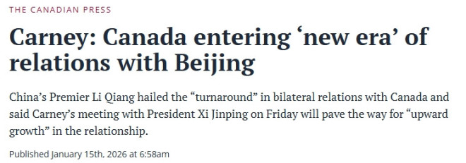 卡尼表示,加拿大正进入与中国关系的“新时代”。他指出,此次北京之行不仅象征着关系回暖,也为两国在可成为“战略伙伴”的领域展开更深入对话奠定了基础。