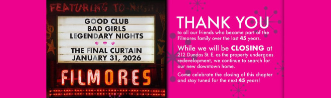 根据Filmores在社交媒体上的公告,该俱乐部将于1月31日关闭位于212 Dundas St. E.的门店。上周,该场所外的招牌也宣布了“月底落幕(final curtain)”的消息。