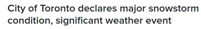 在重大天气事件状态下,由于“降雪量大幅增加,清理城市道路、人行道和自行车道所需时间明显延长”,市府可暂时豁免部分安省政府规定的服务标准。