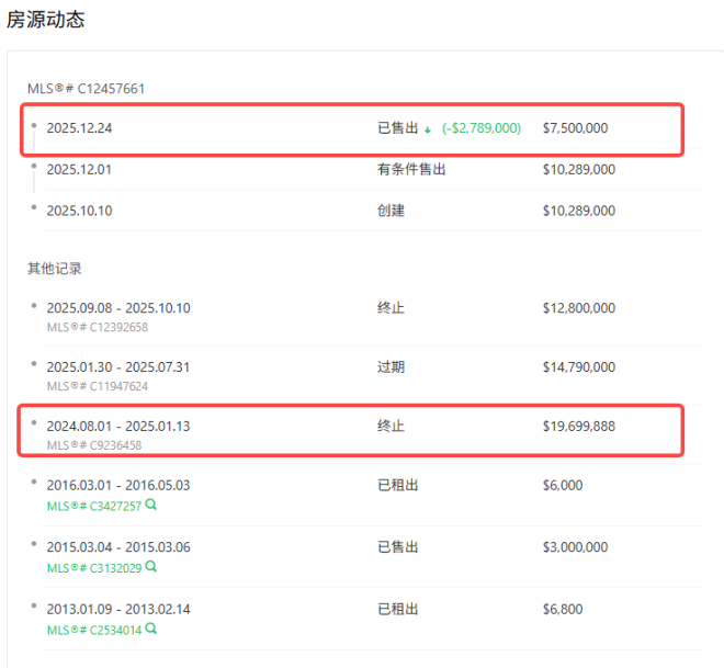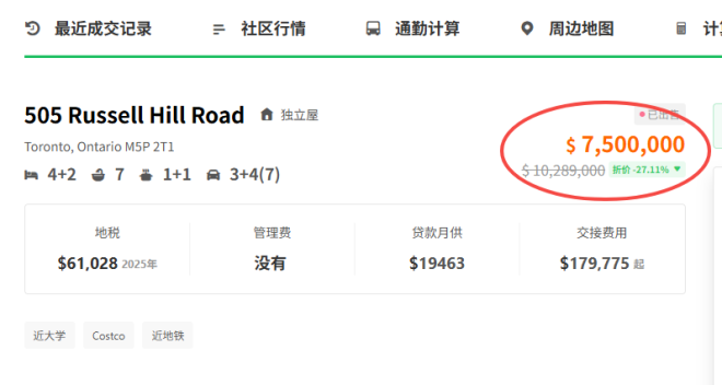 去年年底,一套位于多伦多的全新豪华住宅在多次挂牌未能售出后,挂牌价从1970万一路降到1029万,最终以750万加元的价格成交,比挂牌价少了1220万,甚至连零头都没卖到,堪称2025年亏损天花板,这也清楚地显示出在当下市场中,买家到底能够将价格谈到多低。