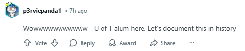 在Reddit论坛的多伦多大学话题下,一位学生发帖称:梅兰妮·伍丁(校长),你的传奇已被铭记,谢谢你。