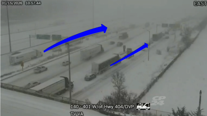 警员维克托·萨鲁迪对CP24表示:“此前有车辆滑入沟渠,也有车辆直接被困在高速路上的积雪中,至少还有一辆车因燃油耗尽而抛锚。”