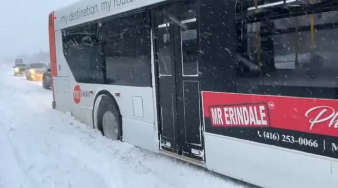 多伦多公车局表示,随着清雪工作推进,全市仍有数十个公交站点暂停服务,以确保乘客安全。