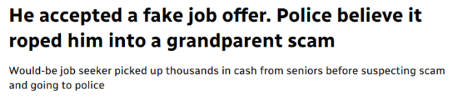 莱斯布里奇(Lethbridge)警方也曾就网络虚假招聘发出警告,指出这类工作可能会把毫无防备的求职者,变成其他犯罪的“跑腿工具人”。