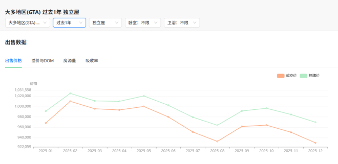 2025年大多伦多地区(GTA)的房地产市场出现断崖式下滑,成交量同比2024年大幅下降11.2%,房价同比下跌4.7%。在多伦多地产局 (TRREB) 发布半个月后,51找房独家发布2026年1月上半月统计数据。