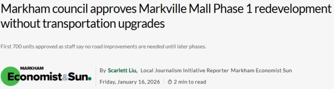 万锦市交通高级经理Eric Chan证实,在前700个单位落地前无需进行道路或路口升级;而市府数据显示,Hwy 7与McCowan路口的运行已达到99.4%的容量。