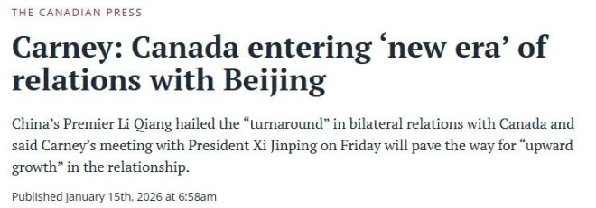 李强通过翻译表示,中方愿意同加方一起,把两国领导人达成的重要共识落到实处,推动双边关系沿着健康、稳定、可持续的方向向前走。卡尼的回应也颇为罕见地热情,他形容这次会晤是新一年、也是中加关系“新时代”的吉兆开端。