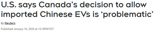 美国贸易代表贾米森·格里尔(Jamieson Greer)周五上午在接受CNBC采访时表示:“我认为这对加拿大来说是有问题的。美国之所以几乎不销售中国汽车,是有原因的——我们通过关税来保护美国汽车工人,也保护美国消费者不受这些车辆的影响。”