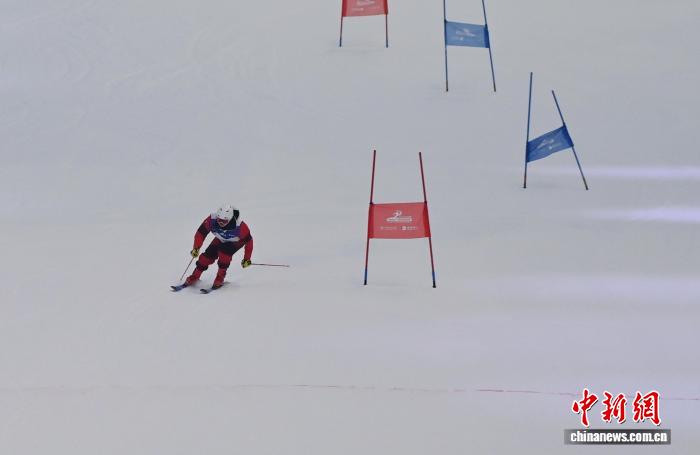 运动员在高山滑雪大回转比赛中。 张瑶 摄