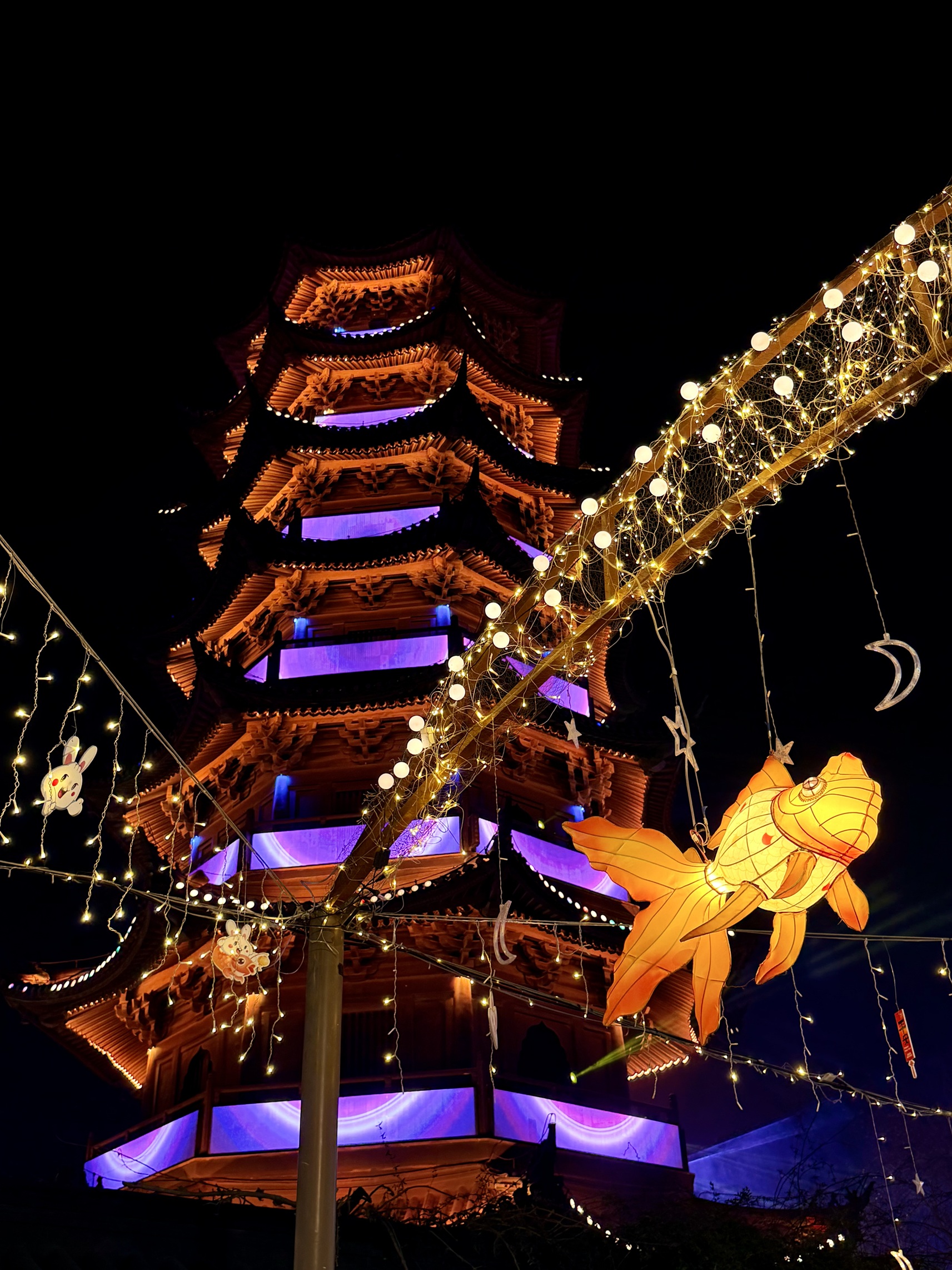 當晚,泗涇古鎮的標誌性建築安方塔瞬間被點亮、一場「光繪泗涇」光影秀,為「璀璨煙火」板塊揭開序幕,泗涇燈會的重頭節目「瑞獸迎春-上海燈彩」主題特展也解開神秘面紗。以燈為脈,承古啟今,呈現國家級非物質文化遺產代表性項目「上海燈彩」的技藝,貫穿「瑞獸賀新年、花鳥傳美好、傳承與創新」三大脈絡,展現非遺燈彩從指尖技藝到心靈滋養的完整生態。