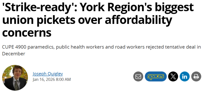 工会与约克区政府于去年12月达成过一份初步协议(之前的劳动合同已于2025年3月31日到期)。尽管该协议得到了工会谈判委员会的支持,但在12月17日的投票中,工会成员最终否决了这份协议。