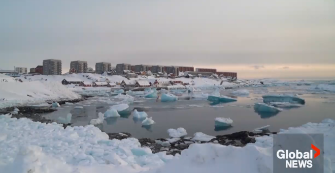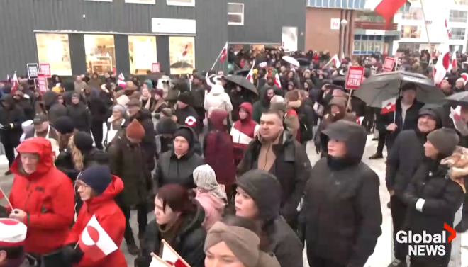 在约825公里之外,数十人在Iqaluit集会,以示对格陵兰人的声援。