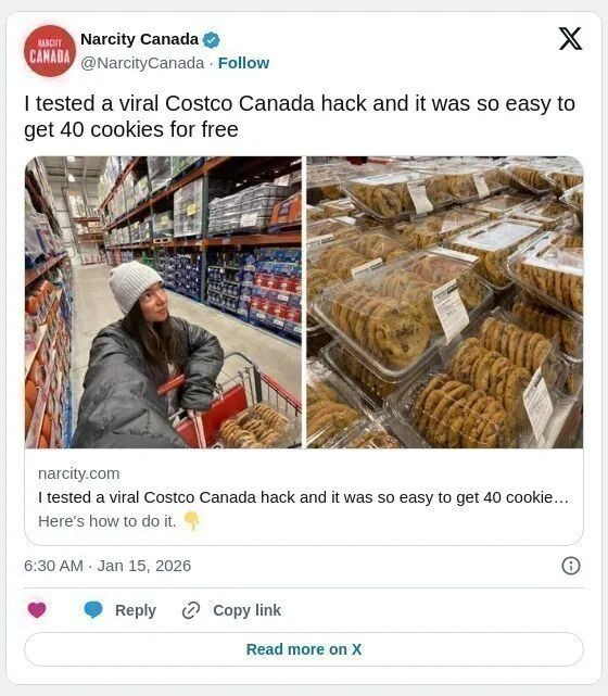 近日,媒体narcity又向大家推荐一条关于 Costco 曲奇饼干的省钱“黑科技”在 TikTok 爆红,播放量已突破 710 万次,引发大量网友讨论。