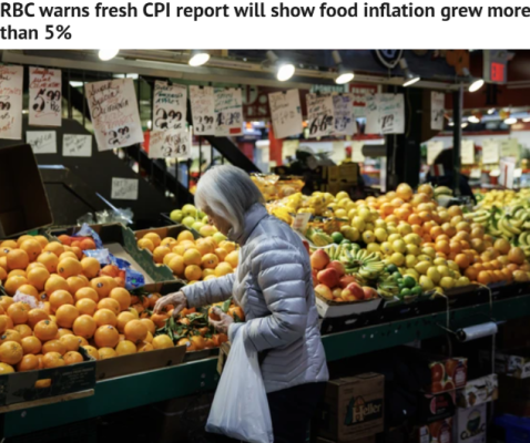 RBC經濟學家Nathan Janzen 和 Abbey Xu在報告中表示:“食品雜貨價格通脹仍然處於高位——截至11月為4.7%”,並補充說,這一水平明顯高於當時整體通脹率2.2%。