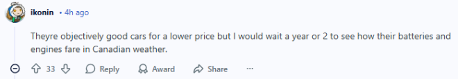 在Reddit论坛的多伦多板块(r/askTO),这个问题吸引了不少网友前来讨论——随着中国电动车进入加拿大市场,有人打算订购一辆么?