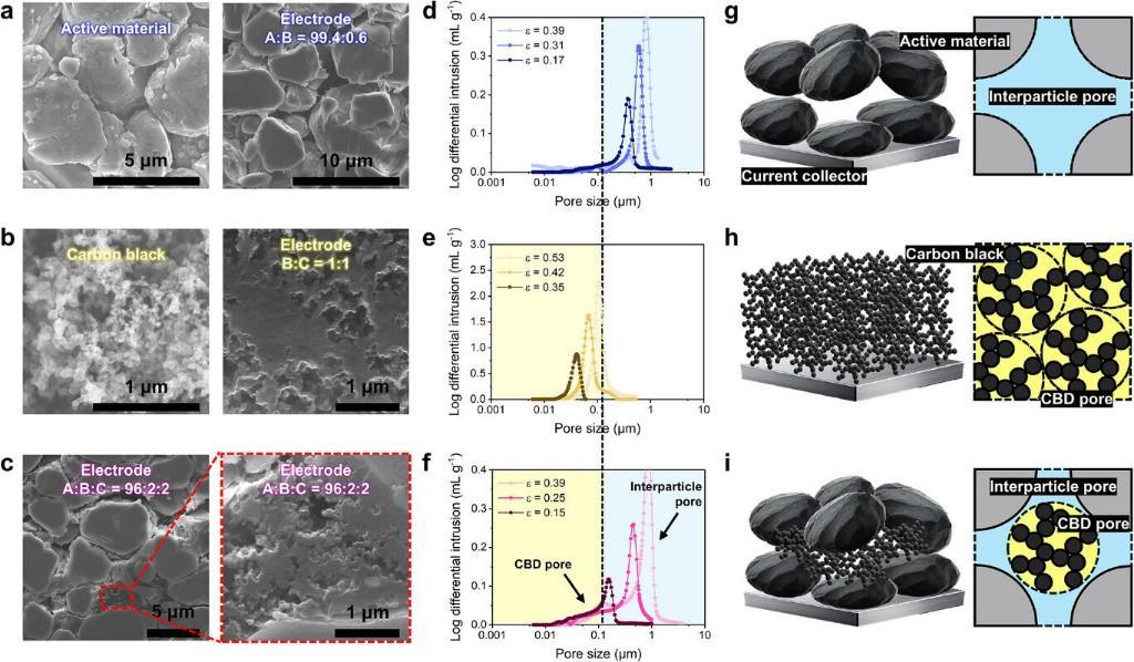 这一性能飞跃源于对电极微观结构的改进。团队发现,电极内部存在两类孔隙:一类是颗粒之间的大孔,有利于锂离子快速迁移;另一类则是由导电添加剂和黏合剂形成的微小孔隙,会堵塞离子通道,成为限制功率的关键“堵点”。