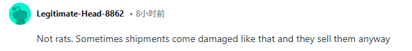 “不是老鼠。有时候货物到货时会损坏成这样,但他们还是会卖。”