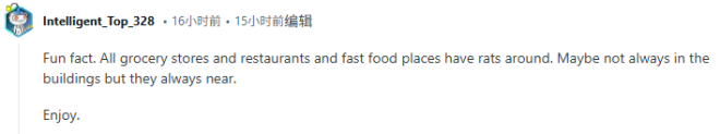“事实上,所有超市、餐馆和快餐店周边都有老鼠。虽然它们不一定总是在建筑里,但它们总是潜伏在附近。”