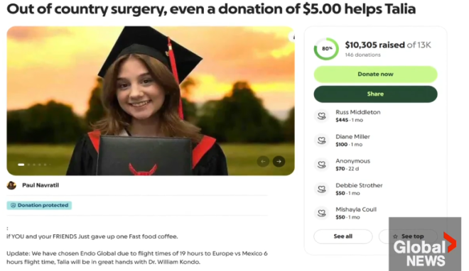 她已经预约了 2 月前往墨西哥一家子宫内膜异位症专科诊所,届时将接受病灶定位检查(endo-mapping),并可能进行手术。家人计划筹集 14,000 加元用于治疗费用。