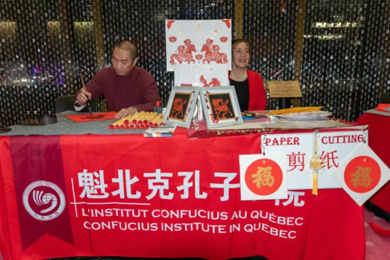 由魁北克孔子學院與佳華學校聯合策劃的非遺文化與中文教育展示,則從傳承實踐的維度延展文化內涵。通過實物陳列、技藝呈現、課堂剪影、教材展示與師生合影,系統記錄中華文化與中文教育在異國他鄉紮根、生長與延續的歷程:一字一句,是文化認同的啟蒙;一課一書,承載著鄉音與鄉情。從識字發聲到通文達意,從描紅書寫到文化體悟,中文教育在潤物無聲中連接著血脈、記憶與未來。