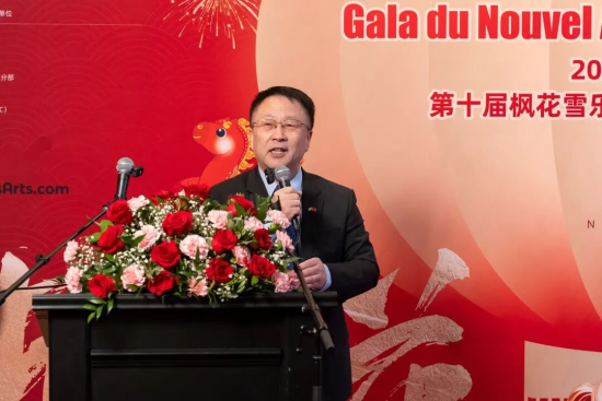 中國駐蒙特利爾總領事戴玉明先生在致辭中指出,楓花雪樂中國春節晚會是“歡樂春節”品牌活動的重要組成部分,已走過十載春秋。晚會從最初的節日慶典,成長為蒙特利爾華人社區的重要文化盛事,不僅豐富了僑胞的春節生活,也為當地社會架起了中加民眾相互理解與交流的橋梁。本屆晚會以“流光映恩澤”為主題,通過舞台光影的藝術呈現,傳遞文化的溫度與情感的細膩,既蘊含傳統韻味,又融入現代審美,充分展現了中華文化在海外的活力與生命力。
