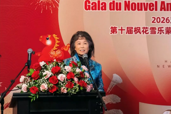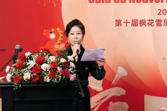 魁北克孔子學院院長、組委會共同主席榮萌女士在致辭中指出,教育傳承文明,文化溝通心靈。楓花雪樂十年的持續耕耘,讓不同文化背景的觀眾在同一舞台上產生共鳴;十年的砥礪前行,讓中華文化在海外看得見、聽得到、傳得遠;而十年的傾注心血與精心澆灌,也使這台歡樂春晚成為蒙特利爾多元文化版圖中一抹溫暖而恒久的色彩。