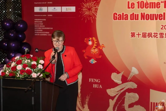 魁北克省議員 Linda Caron 在致辭中表示,文化藝術活動不僅豐富了民眾的精神生活,更在潛移默化中增強了社區的凝聚力與歸屬感。她高度肯定楓花雪樂春節晚會通過藝術的形式,讓不同文化背景的人們彼此靠近、相互理解,指出藝術正是跨越語言與文化差異、凝聚社區情感的重要紐帶。她認為,楓花雪樂正是一場能夠體現這種文化力量的高水準盛會,充分展現了魁北克社會開放包容的精神風貌以及多元共生、充滿活力的文化生態。