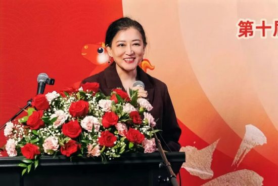 楓花雪樂春晚總導演、北美文化產業促進會會長張潔女士在答謝辭中,向所有為晚會付出心血的藝術家、台前幕後志願者、傾情支持的讚助夥伴們以及蒞臨現場和持續關注楓花雪樂的各界朋友表達了誠摯感謝。她回顧了楓花雪樂十年來從初心出發、風雨兼程的發展歷程,表示正是中國駐蒙特利爾總領館的大力支持、僑界同仁的信任守望、藝術家們的精心付出與志願者的默默奉獻,才讓晚會不斷升維,成長為蒙特利爾廣受認可的品牌春晚。她指出,第十屆既是一座重要的文化里程碑,更是一個面向未來的新起點,期待楓花雪樂在未來繼續承載文化的溫度,在光影流轉之間,把感恩、希望與美好傳遞得更遠、更久。
