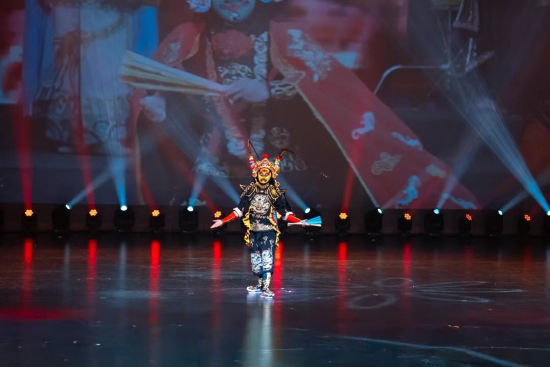 楊軍表演的《變臉》以京劇藝術為載體,一瞬千變的面具為媒介,將人物情感瞬息萬變的內心世界生動展現。整個表演動作精準利落,面具轉換幹凈迅捷,技藝高超令人嘆服。