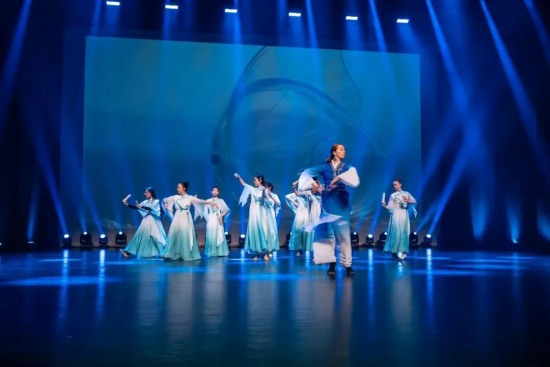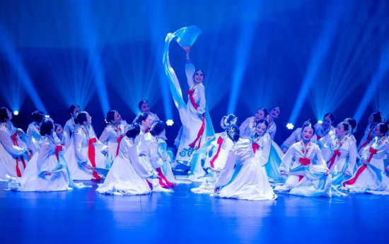 汪姚萍舞蹈工作室呈現的朝鮮舞《長白瀑布》,舞姿流暢,手臂與肩部的細膩抖動富於韻律,腳步輕穩含蓄卻暗藏力量,既保留了朝鮮舞柔美端莊的傳統神韻,又融入了對自然景象的生動寫意。
