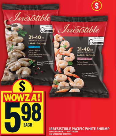 340g冷冻太平洋白虾(生/熟)$5.98!